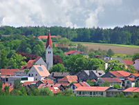 Isen mit der Kirchturmspitze von St. Zeno. Die Kirche wurde im 12. Jahrhundert erbaut. Als Vorbild galt der Freisinger Dom.